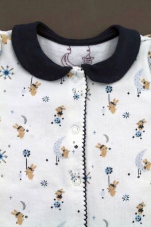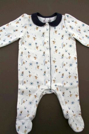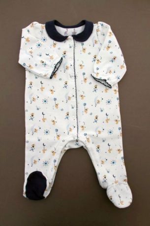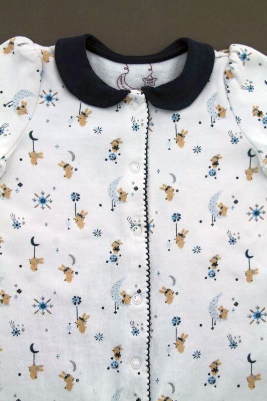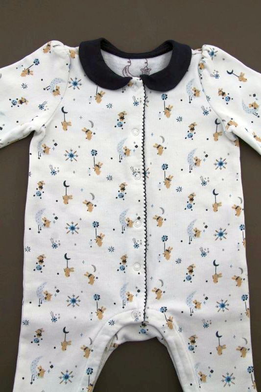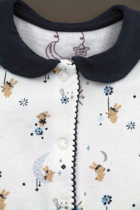 Dors-bien en molleton écru imprimé floral avec col pétales en popeline écrue, pour bébé fille 9 mois, doux à l'intérieur et chaud pour la mi-saison ou l'hiver, avec 5 magnifiques...