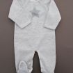 Pyjama mixte en velours très doux rouge, pour bébé 3 mois, chaud pour les fêtes de fin d'année cet hiver, avec col blanc en popeline de coton brodé "premier Noël", broderie lapins sur la...