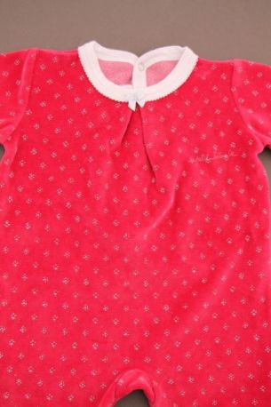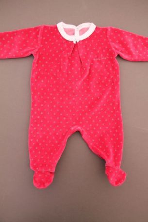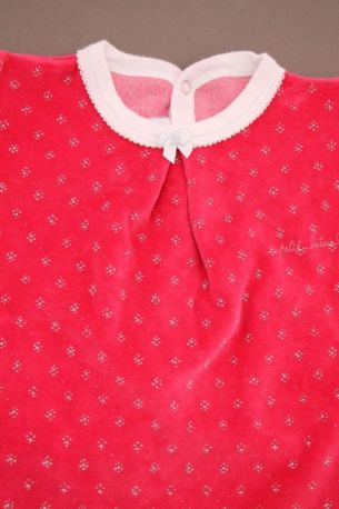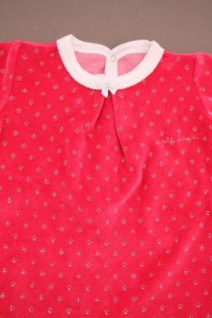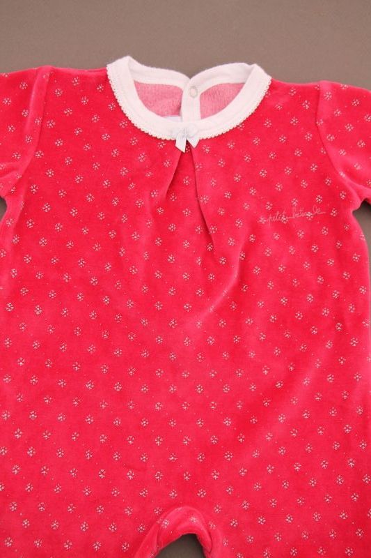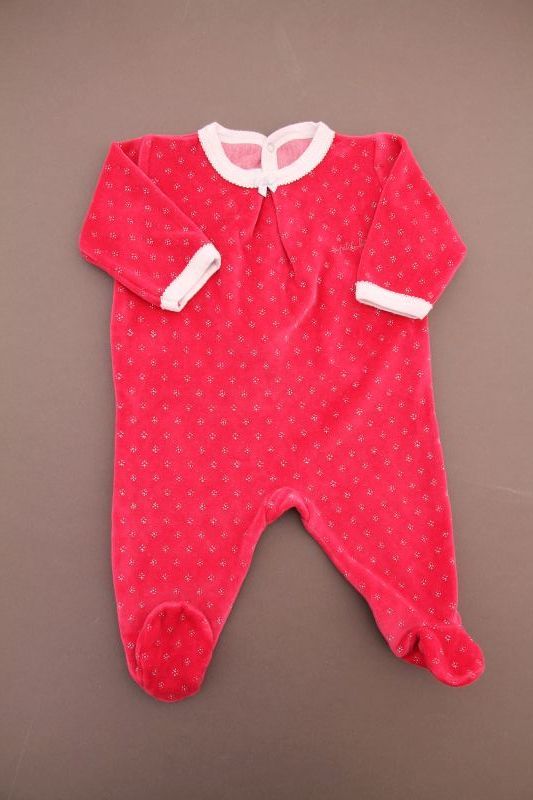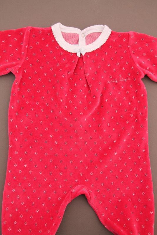 Pyjama de Noël en velours doux rouge à pois blancs, pour bébé fille 3 mois, chaud pour les fêtes de fin d'année cet hiver, avec broderie tête de renne et "Joyeux Noël" devant, poignets...