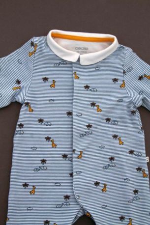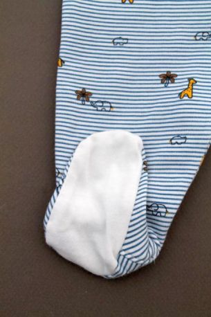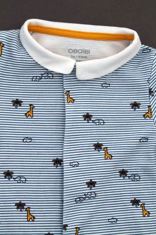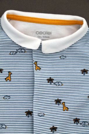 Dors-bien en jersey fin blanc rayé bleu roi, pour bébé garçon 1 mois, très léger pour le printemps ou l'été, avec pressions devant et entre les jambes pour faciliter l'habillage et le change...