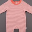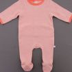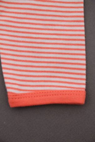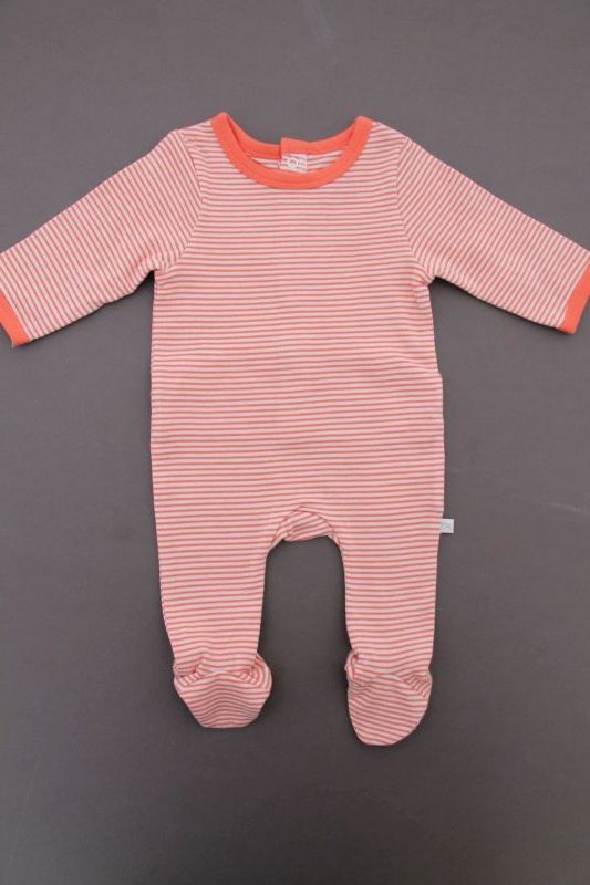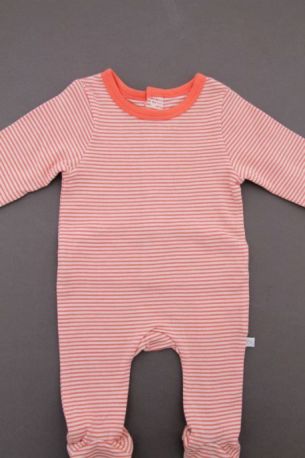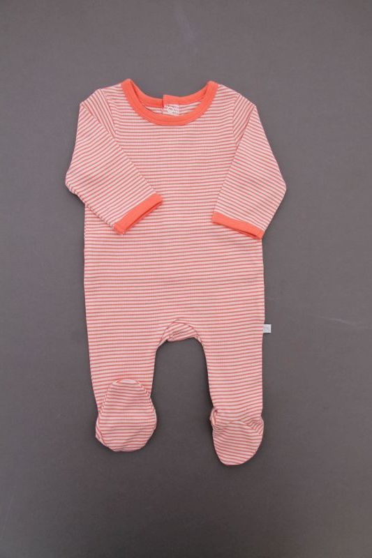 Gigoteuse mixte en jersey doux rayé mauve et blanc pour bébé 0 à 2 mois, très légère pour un bébé d'été, avec ouverture zippée devant jusqu'en bas et protection du menton.