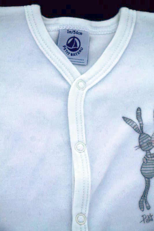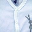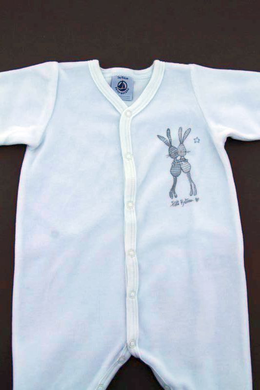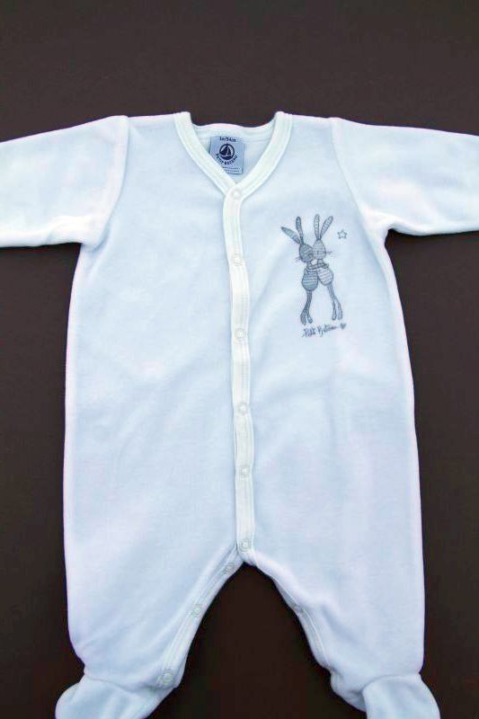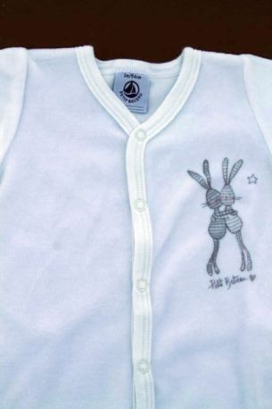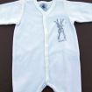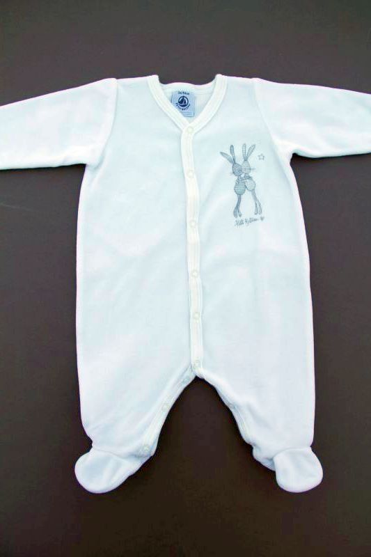 Dors-bien mixte en velours doux blanc uni, pour bébé 1 mois, chaud pour le printemps, la mi-saison ou l'hiver, avec moufles intégrées dans les manches et pressions devant et entre les jambes...
