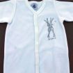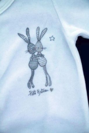 Body mixte blanc avec motif étoiles et lune à manches longues, pour bébé 1 mois, indispensable dans la valise de la maternité, avec pressions croisées devant.