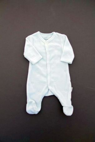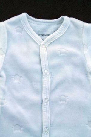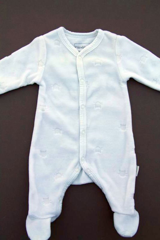 Dors-bien mixte en velours vert d'eau avec chat brodé, pour bébé prématuré, idéal dans la valise de la maternité pour un petit bébé, avec pressions devant et entre les jambes pour faciliter...