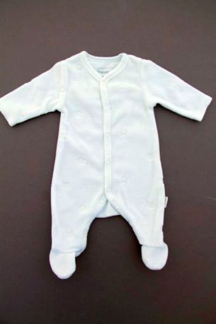 Pyjama mixte en velours taupe, pour bébé prématuré, chaud pour un petit bébé à la maternité pour toutes les saisons, avec nuages brodés sur la poitrine et pressions devant sur le côté...
