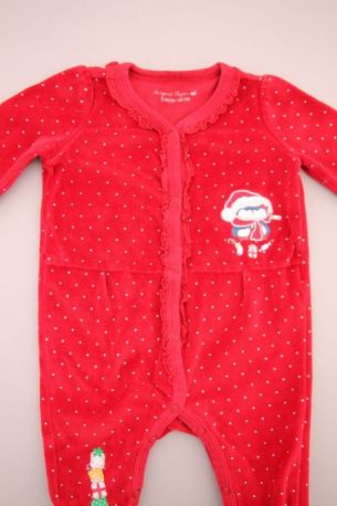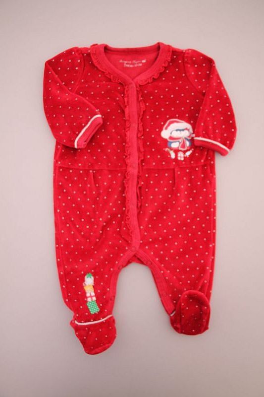 Pyjama de Noël en velours doux rouge, pour bébé fille 3 mois, chaud pour l'hiver, avec broderie écureuil sur la poitrine, cheville élastiquée pour un bon maintien du pied et pressions au dos...