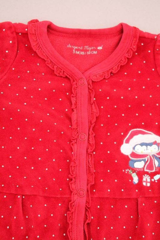 Pyjama 2 pièces de Noël en polaire douce gris clair et rouge et blanc, pour bébé fille 3 mois, très chaud pour les fêtes de fin d'année cet hiver.
