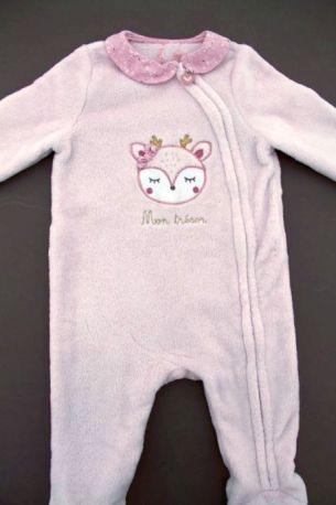 Pyjama polaire chaud Sergent Major Sergent Major Dors-bien en polaire douce rose pâle brodé, pour bébé fille 18 mois, très chaud pour l'automne ou l'hiver, avec sous-pieds antidérapant, col en popeline imprimée et fermeture zippée devant sur le côté jusqu'à la jambe gauche. Ce pyjama peut être aussi utilisé comme un surpyjama. Composition : Corps : 100% polyester. Col : 100% coton. Lavage à 30°. Longueur épaule - pied : 66 cm. Occasion en excellent état, comme neuf (valeur neuf : 25,99 €) Taille En stock Expédié en 24/48h Quantité AJOUTER AU PANIER BébéMarques vous conseille également Gigoteuse TOG 3 hiver Vertbaudet Combinaison de transport en polaire microfibre molletonnée vieux rose, pour bébé fille 18 à 36 mois, très chaude pour l'automne ou l'hiver, avec manches longues amovibles avec... 16.90 € 18 - 36 mois Votre article a bien été ajouté au panier Quantité : × Partager et faites découvrir cet article par mail Vous souhaitez faire connaître ce produit à vos ami(e)s ?Inscrivez simplement leurs noms, prénoms, e-mails et votre message d'accompagnement.Ils pourront ainsi venir directement sur la page que vous avez sélectionnée. Nom(s) et/ou prénom(s) de vos ami(e)s E-mail de vos ami(e)s Votre nom et/ou prénom Votre E-mail Votre message d'accompagnement (1000 caractères maximum) : Nombre de caractères restants : Ne remplissez pas cette case