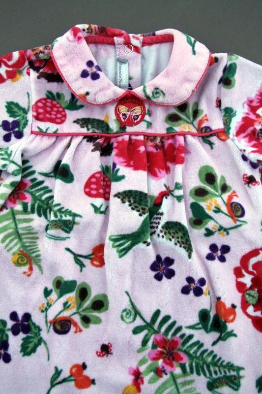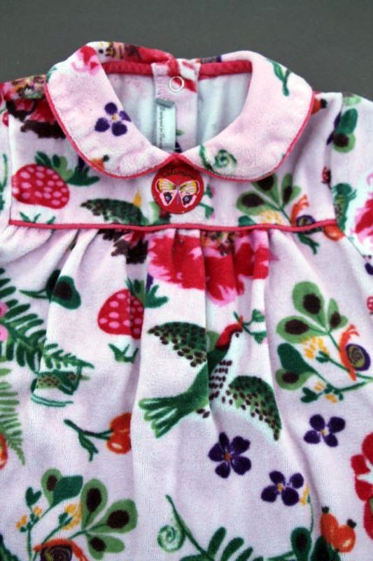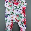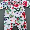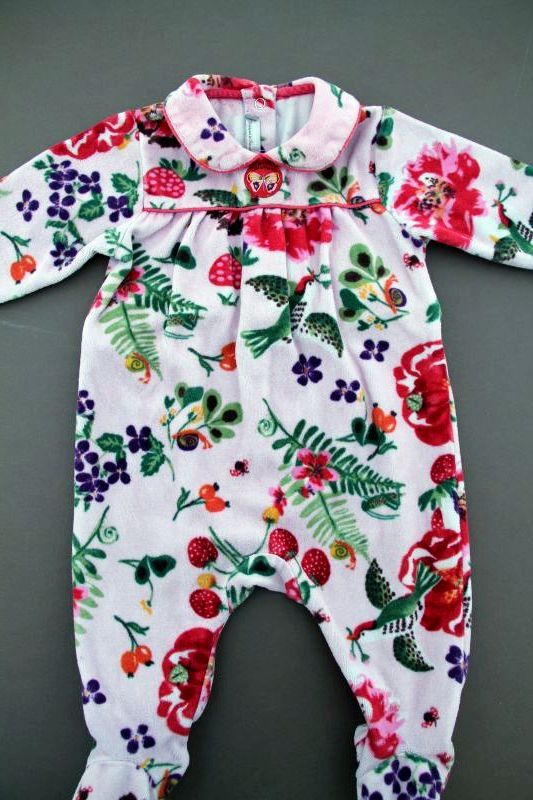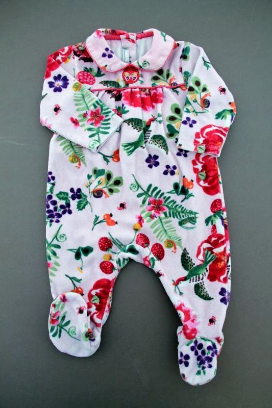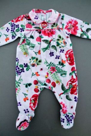 Pyjama en velours rose avec blouse imprimée fleurie accrochée, pour bébé fille 6 mois, chaud pour la mi-saison ou l'hiver, avec pressions tout le long du dos et entre les jambes pour faciliter...