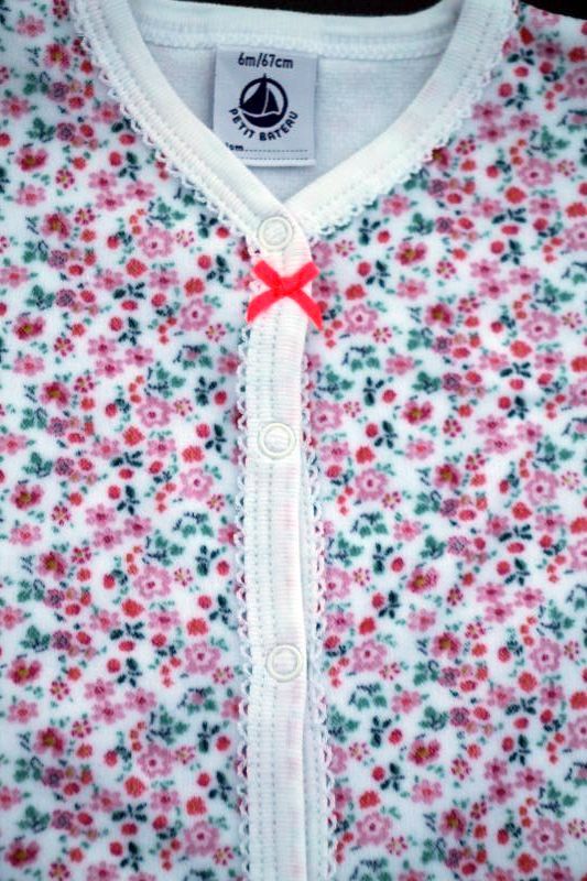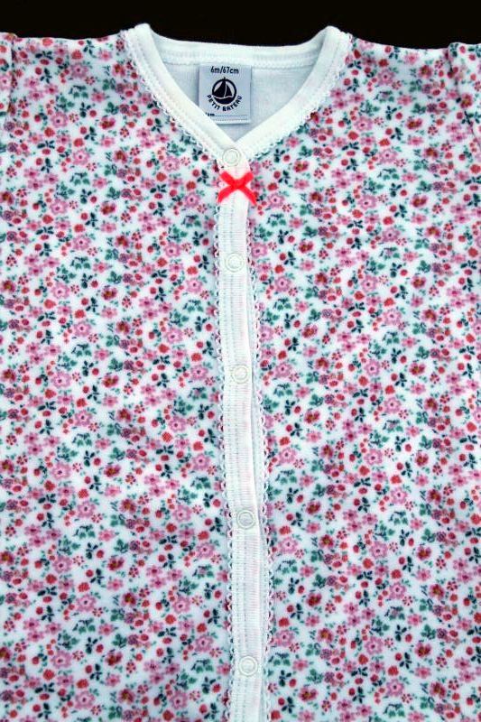 Pyjama velours à fleurs Petit Bateau Petit Bateau Dors-bien en velours blanc imprimé floral rose et vert, pour bébé fille 6 mois, chaud pour la mi-saison ou l'hiver, avec pressions devant et entre les jambes pour faciliter le change. Composition : 75% coton, 25% polyester. Lavage à 40°. Longueur épaule - pied : 49 cm. Occasion en excellent état (valeur neuf : 35 €). Taille En stock Expédié en 24/48h Quantité AJOUTER AU PANIER Votre article a bien été ajouté au panier Quantité : × Partager et faites découvrir cet article par mail Vous souhaitez faire connaître ce produit à vos ami(e)s ?Inscrivez simplement leurs noms, prénoms, e-mails et votre message d'accompagnement.Ils pourront ainsi venir directement sur la page que vous avez sélectionnée. Nom(s) et/ou prénom(s) de vos ami(e)s E-mail de vos ami(e)s Votre nom et/ou prénom Votre E-mail Votre message d'accompagnement (1000 caractères maximum) : Nombre de caractères restants : Ne remplissez pas cette case