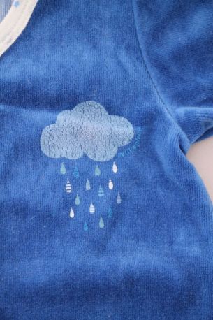 Dors-bien en velours bleu avec nuage doux brodé sur la poitrine, pour bébé garçon 3 mois, doux et chaud pour la mi-saison ou l'hiver, avec pressions au dos.