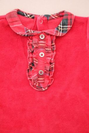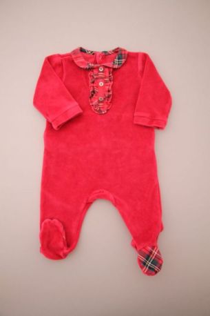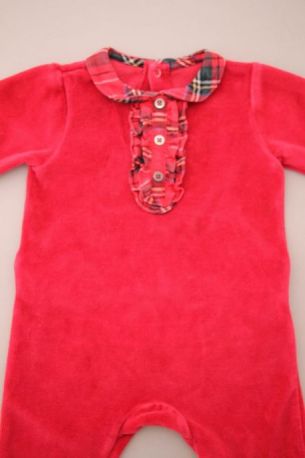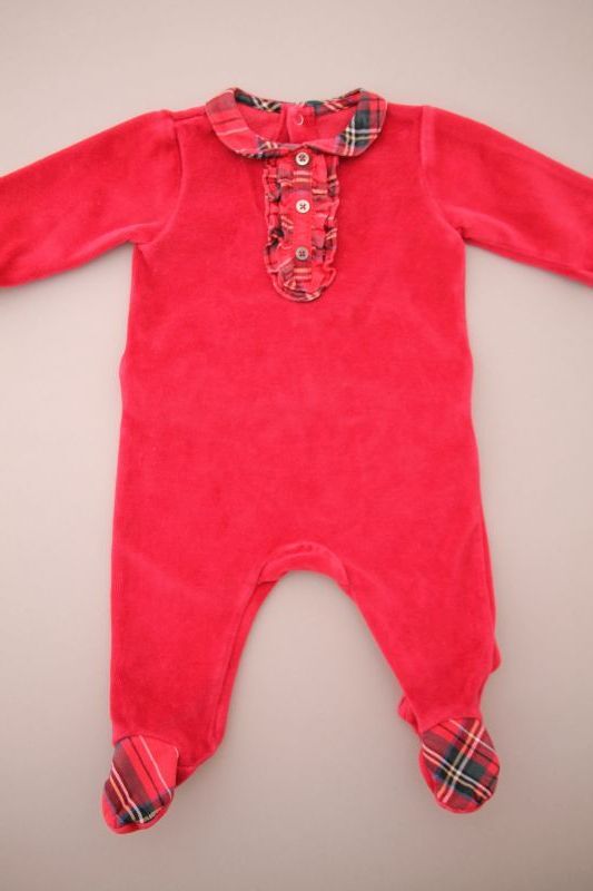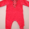 Dors bien en velours rouge foncé à pois argentés, pour bébé fille 3 mois, chaud pour les fêtes de fin d'année cet hiver, avec broderie côté coeur, cheville élastiquée pour un bon maintien...