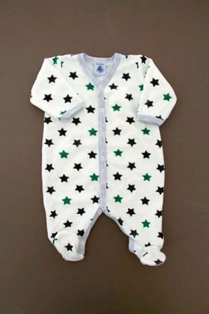 Dors-bien en velours bleu bord jersey gris clair chiné, pour bébé garçon naissance, chaud pour la maternité pour toutes les saisons, avec pressions devant et entre les jambes pour faciliter...