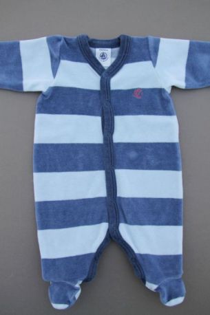 Pyjama en velours rayé Petit Bateau Petit Bateau Dors-bien en velours doux rayé bleu marine et bleu pâle, pour bébé garçon naissance, chaud pour la mi-saison ou l'hiver, indispensable dans la valise de la maternité, avec pressions devant et entre les jambes pour faciliter l'habillage et le change. Composition : 75% coton, 25% polyester. Lavage à 40°. Longueur épaule - pied : 40 cm. Occasion en excellent état (valeur neuf : 30 €) Taille En stock Expédié en 24/48h Quantité AJOUTER AU PANIER Votre article a bien été ajouté au panier Quantité : × Partager et faites découvrir cet article par mail Vous souhaitez faire connaître ce produit à vos ami(e)s ?Inscrivez simplement leurs noms, prénoms, e-mails et votre message d'accompagnement.Ils pourront ainsi venir directement sur la page que vous avez sélectionnée. Nom(s) et/ou prénom(s) de vos ami(e)s E-mail de vos ami(e)s Votre nom et/ou prénom Votre E-mail Votre message d'accompagnement (1000 caractères maximum) : Nombre de caractères restants : Ne remplissez pas cette case