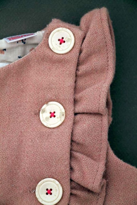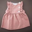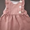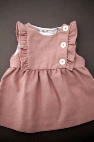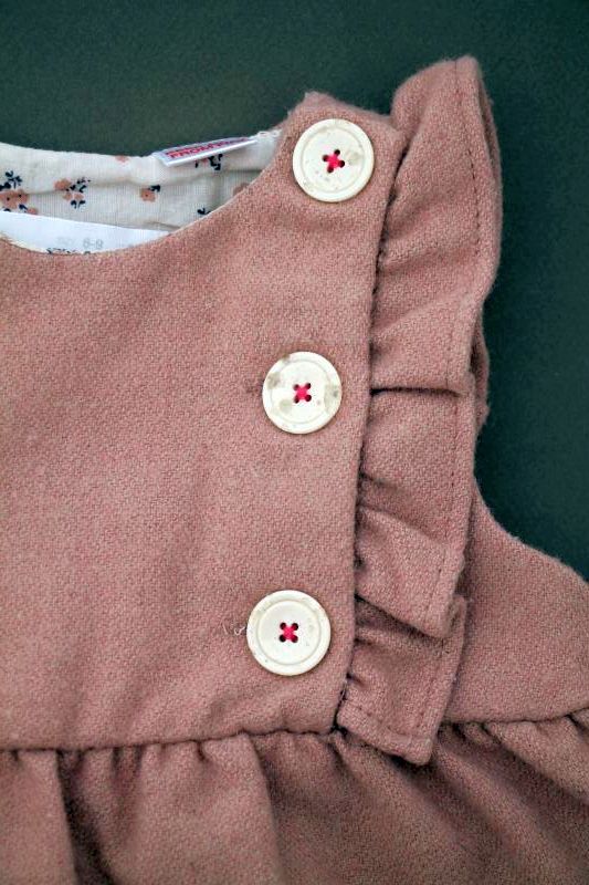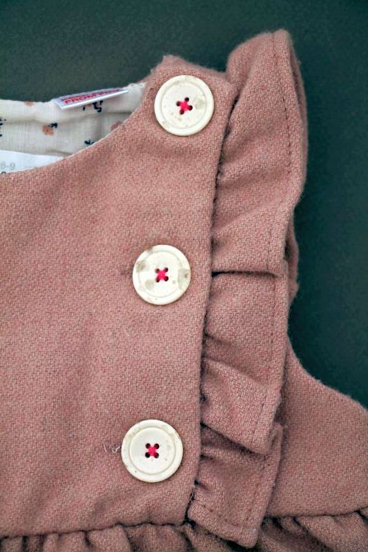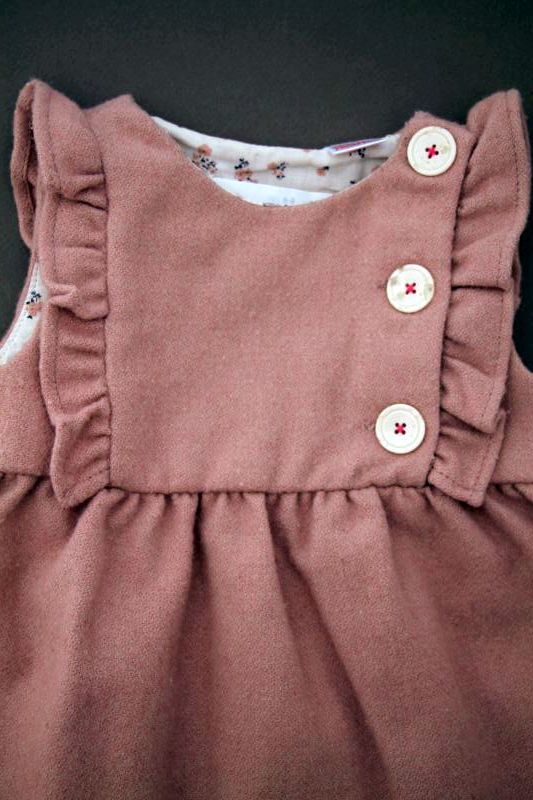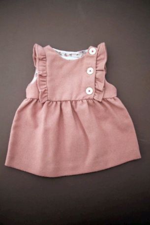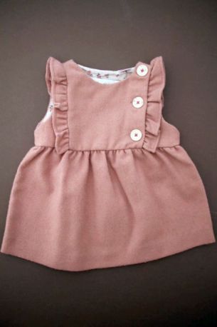 Robe doublée en velours beige rosé à manches papillon, pour bébé fille 6 à 9 mois, chaude pour l'automne ou l'hiver, avec broderie sur la poitrine et 4 boutons tout le long du dos pour...