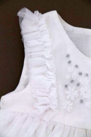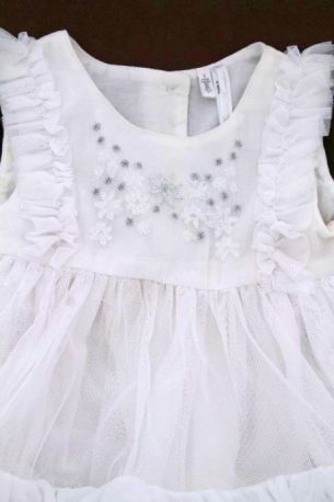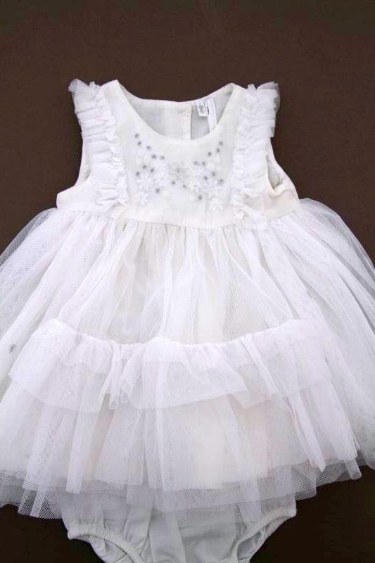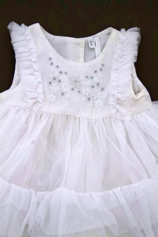 Cardigan blanc de cérémonie en maille fine, pour bébé fille 2 à 4 mois, très léger pour le printemps ou l'été, idéal pour un baptême, un mariage..., avec fermeture par un bouton...