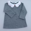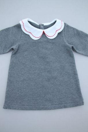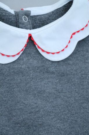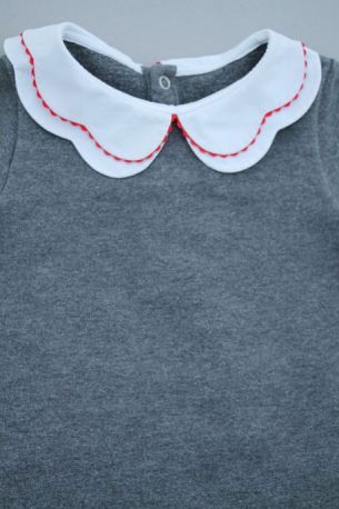 Cape en tricot gris anthracite, pour bébé fille 12 mois, idéal pour la mi-saison, avec broderie devant et un bouton sur la poitrine pour faciliter l'enfilage.
