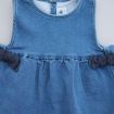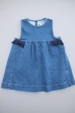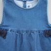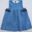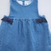 Robe chasuble en denim bleu foncé, pour bébé fille 12 à 18 mois, idéale pour la mi-saison, avec 2 poches devant et fermeture zippée dans le dos pour faciliter l'enfilage.
