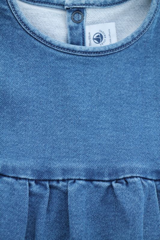 Robe en denim fin bleu à manches longues retroussables, pour bébé fille 12 à 18 mois, légère pour le printemps ou l'été, avec 5 boutons devant pour faciliter l'enfilage.