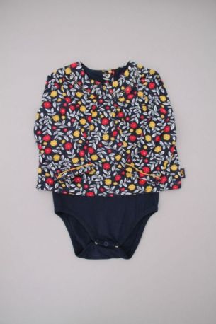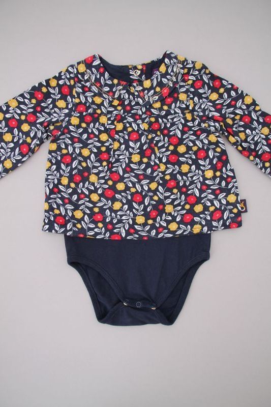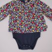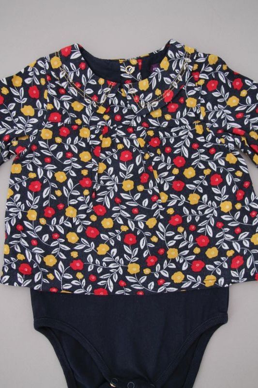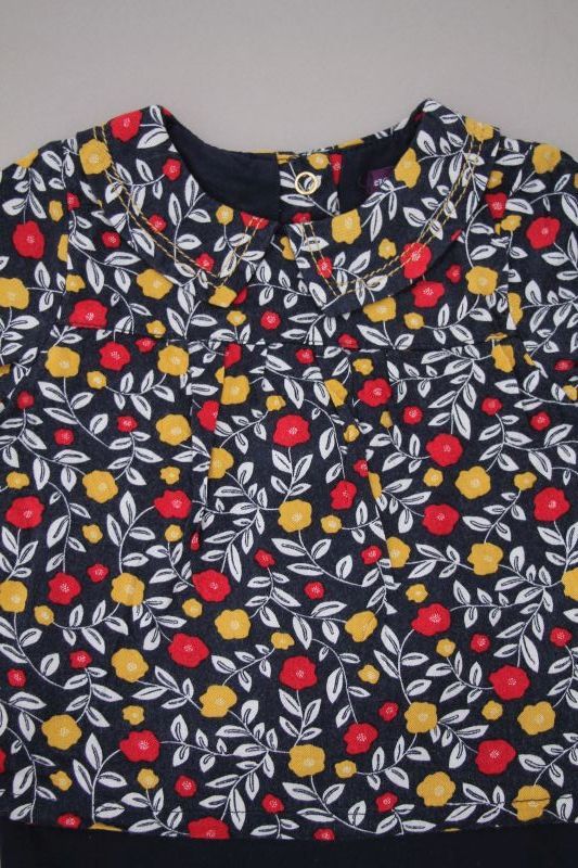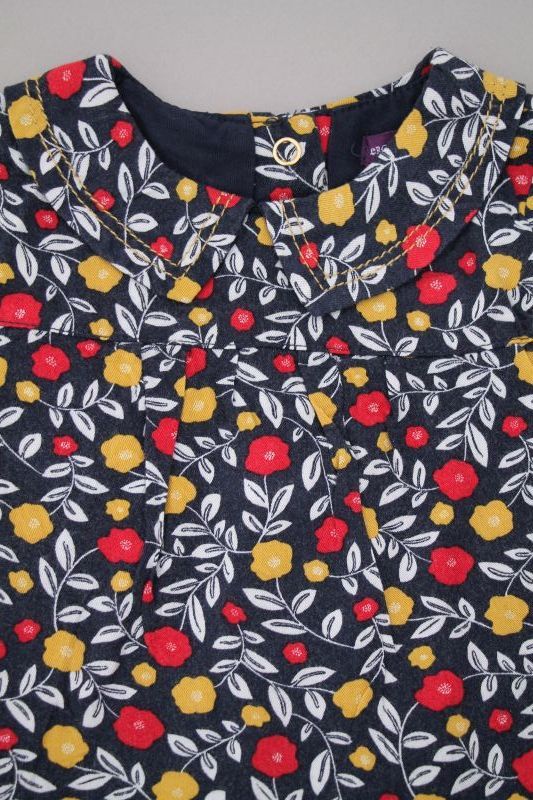 Salopette écrue imprimée florale, pour bébé fille 9 à 12 mois, idéale pour la mi-saison ou l'automne, avec bretelles boutonnées.