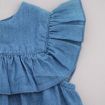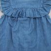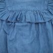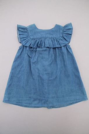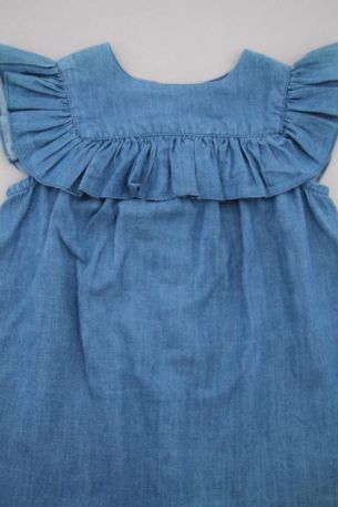 Robe bi-matières à bretelles, pour bébé fille 8 mois, légère pour le printemps ou l'été, avec haut en jersey bleu chiné avec fleurs et papillons sérigraphiés, bas en chambray à pois et...