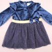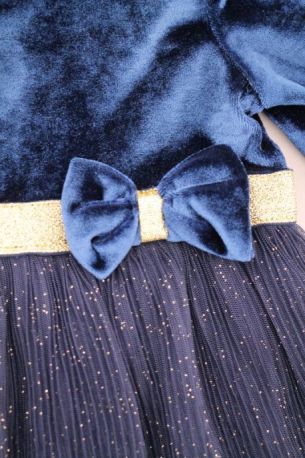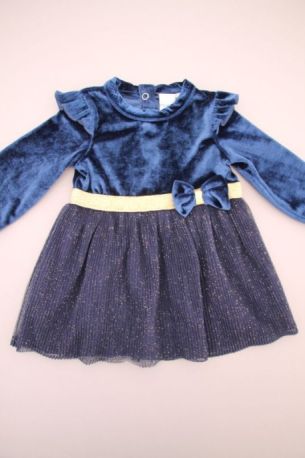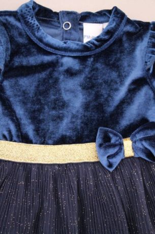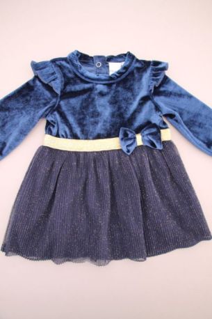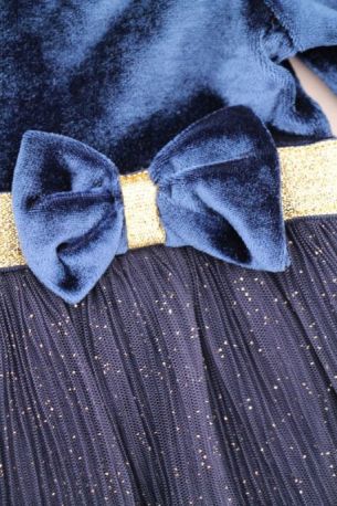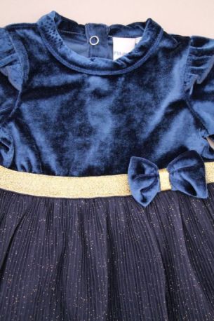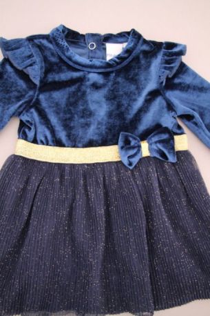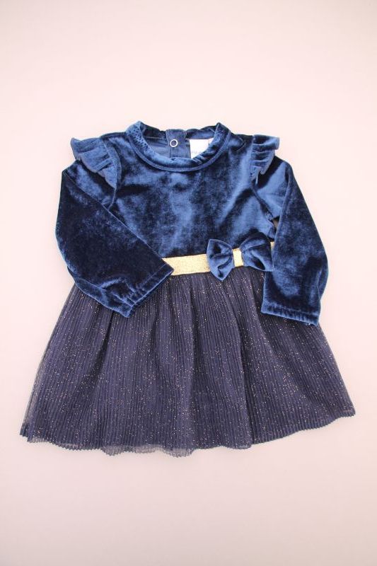 Robe bi-matières habillée bleu marine avec paillettes, pour bébé fille 3 mois, chaude pour l'hiver ou la mi-saison, idéale pour les fêtes de fin d'année : Noël, Nouvel An, un mariage, un...
