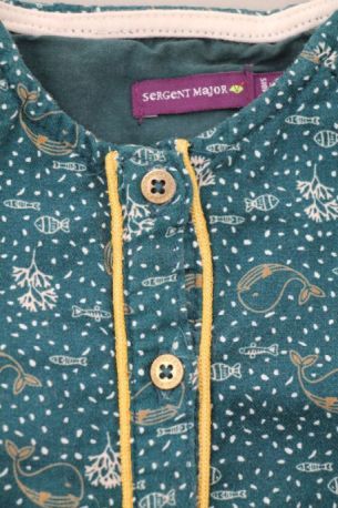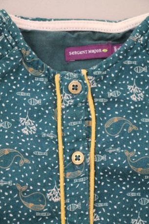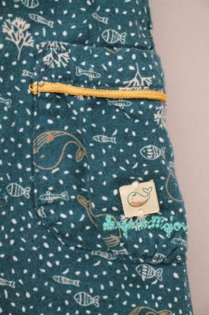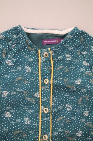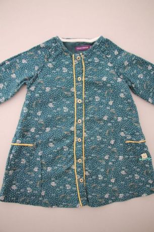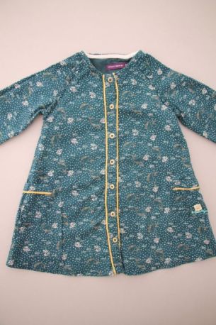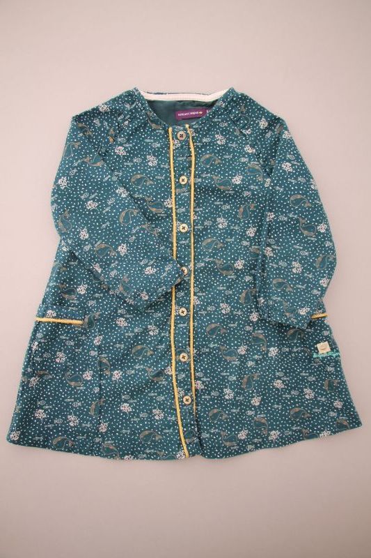 Cardigan en maille jersey doublé réversible, pour bébé fille 18 mois, idéal pour le printemps ou l'été, avec un côté bleu canard uni et un côté blanc rayé bleu turquoise et ouverture par 3...