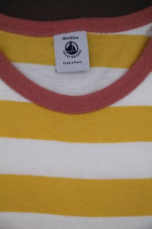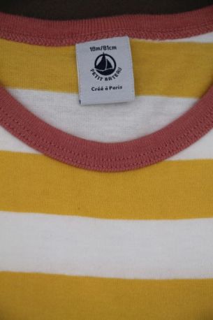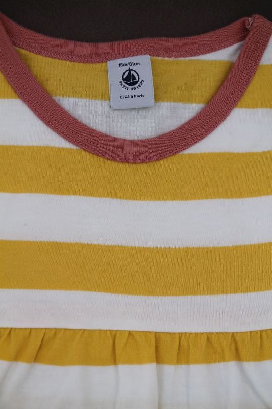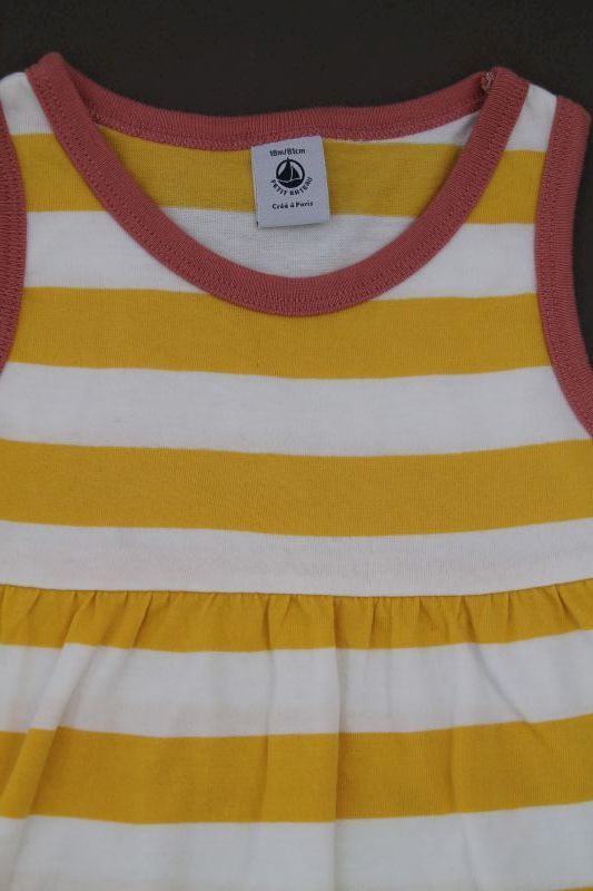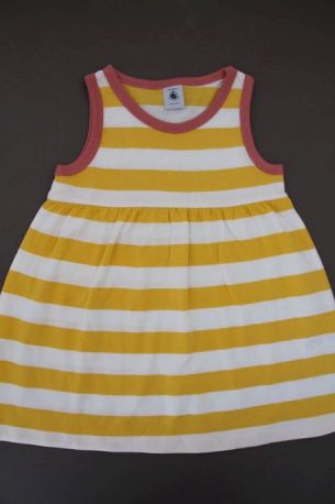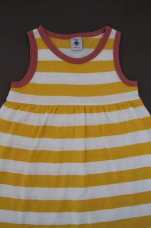 Robe à bretelles en jersey fin blanc rayé rose fuchsia, pour bébé fille 18 mois, légère pour l'été, avec haut élastiqué pour faciliter l'habillage.