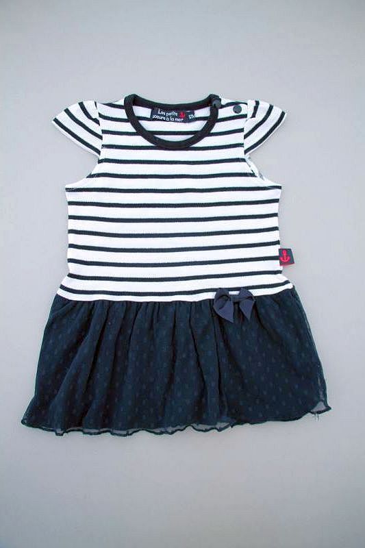 Robe marinière rouge, blanc et bleu marine, pour bébé 12 mois, en jersey de coton fin, légère et confortable pour l'été.
