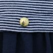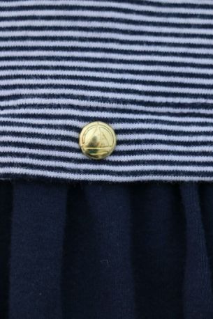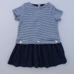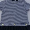 Robe marinière en jersey épais écru rayé bleu marine, pour bébé fille 6 mois, idéale pour le printemps ou l'été, avec bateau gris brodé côté coeur et un bouton de chaque côté des...