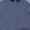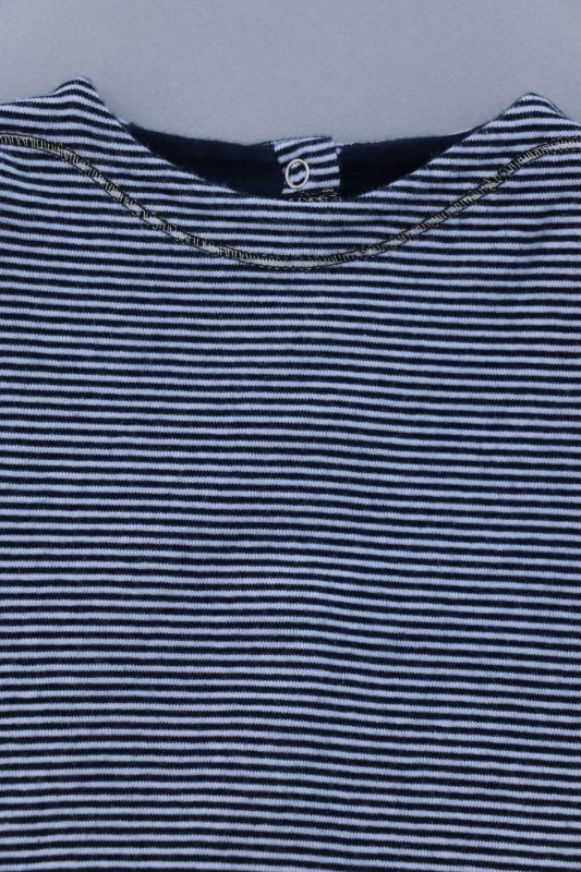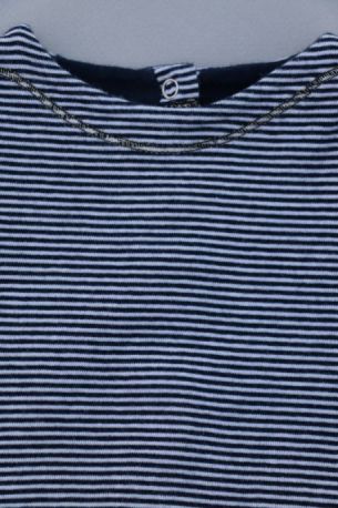 Robe en jersey fin écru rayé bleu marine foncé à manches courtes, pour bébé 6 mois, confortable à porter, légère pour l'été, avec 2 boutons-pression argentés de chaque côté des épaules...