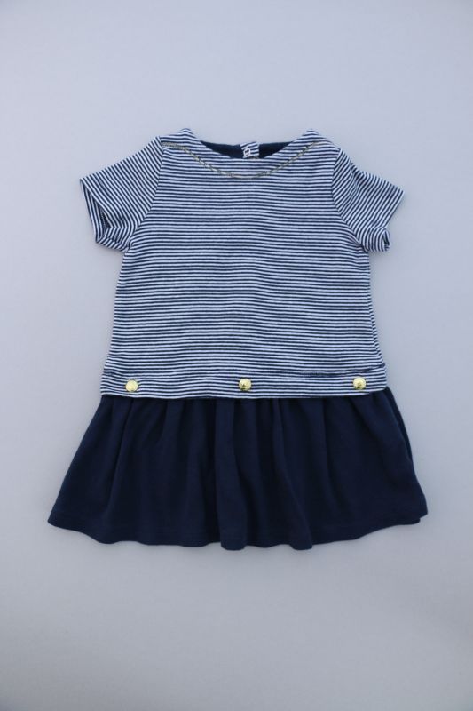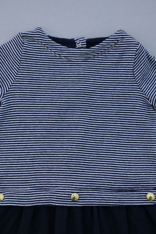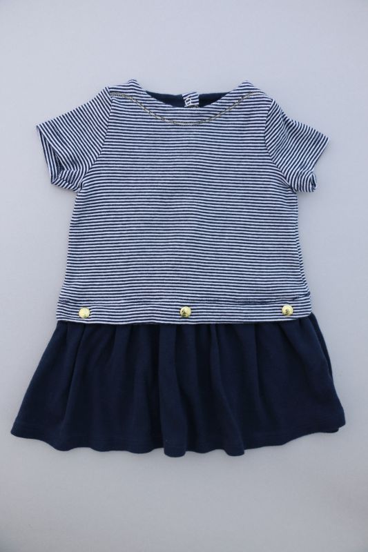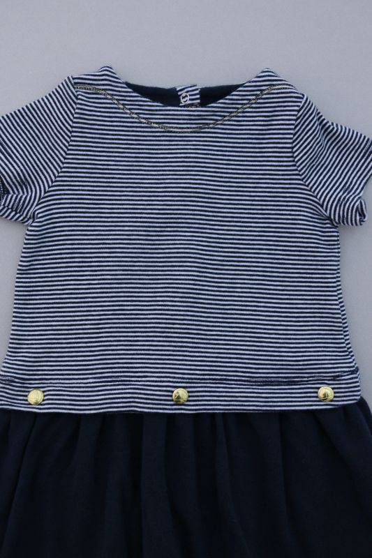 Robe en jersey bleu marine à col marin, pour bébé fille 6 mois, idéale pour le printemps ou l'été, avec 3 boutons sur la poitrine pour faciliter l'habillage.
