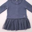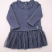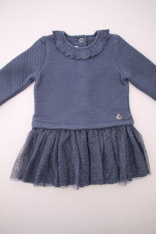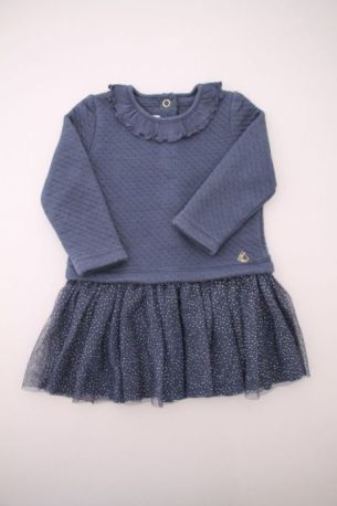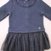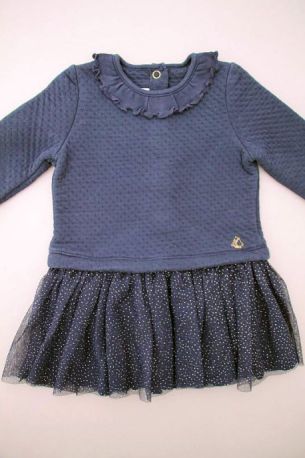 Robe bi-matières habillée bleu marine et doré avec bas en tulle doublé, pour bébé fille 12 mois, chaude pour l'automne ou l'hiver, idéale pour les fêtes de fin d'année, un mariage, un...