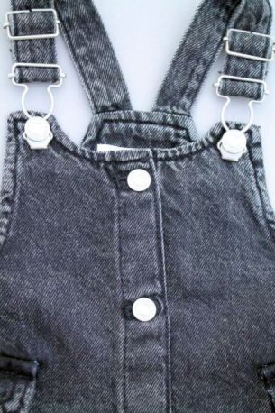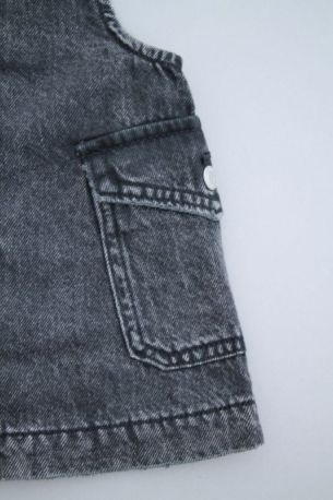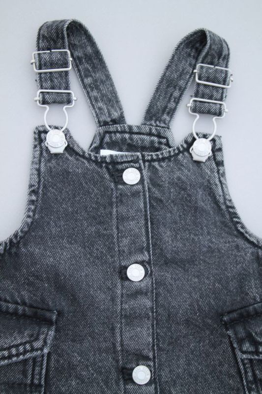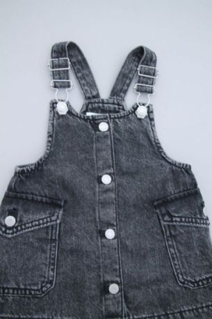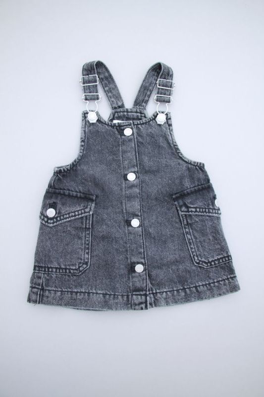 Robe chasuble en jean bleu, pour bébé 12 mois, idéale pour la mi-saison, avec haut entièrement doublé, 1 bouton et 1 pression de chaque côté des hanches et bretelles boutonnées pour faciliter...