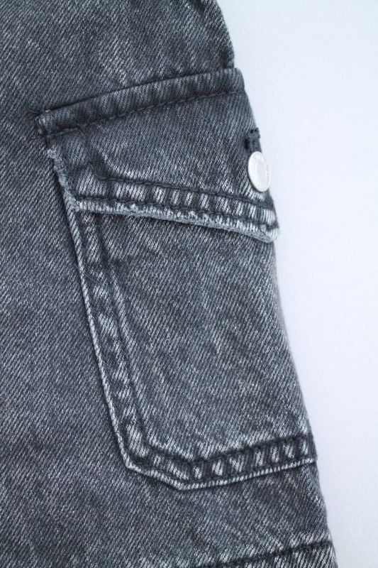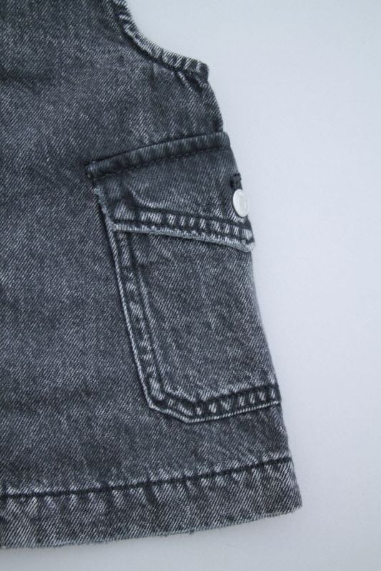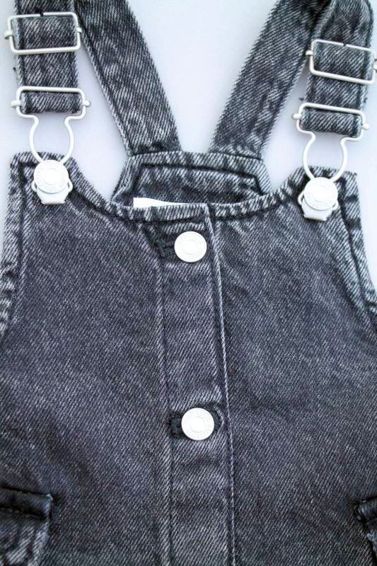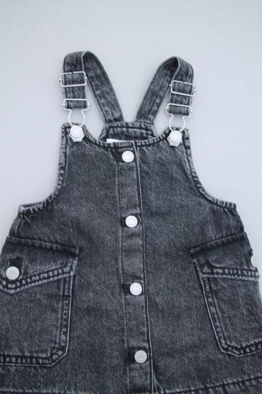 Robe salopette en jean bleu, pour bébé 12 mois, idéale pour la mi-saison ou l'hiver, avec bretelles pressionnées réglables et un bouton-pression de chaque côté des hanches pour faciliter...