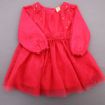 Pull de Noël en tricot doux rouge, rose et écru, pour bébé fille 6 mois, chaud pour l'hiver, avec broderie devant, col volanté et fermeture boutonnée tout le long du dos pour faciliter...
