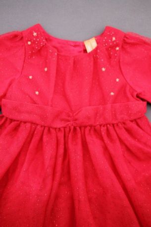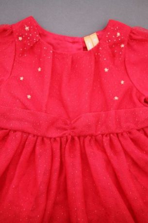 Robe à manches courtes en tricot rouge flocons blancs, pour bébé fille 3 mois, chaude pour l'hiver et idéale pour les fêtes de fin d'année, avec 3 boutons dans le dos pour faciliter...