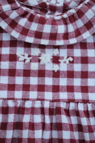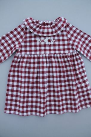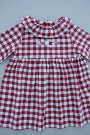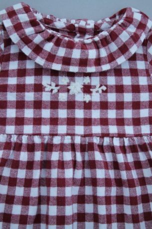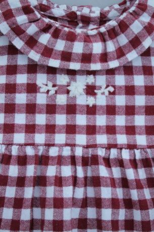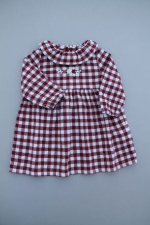 Robe chasuble habillée bordeaux, écru, bleu marine et noir, pour bébé fille 1 an, chaude pour l'automne ou l'hiver car entièrement doublée, avec 2 poches zippées devant et fermeture zippée...