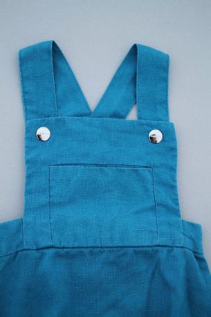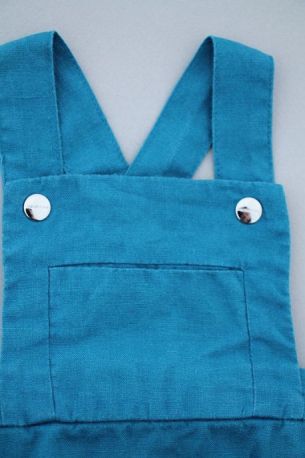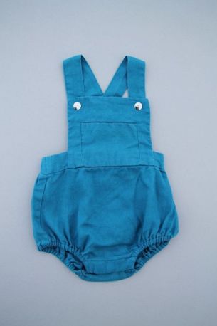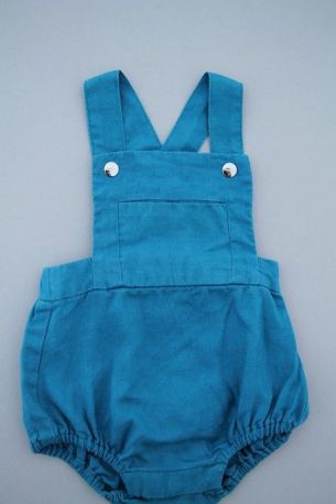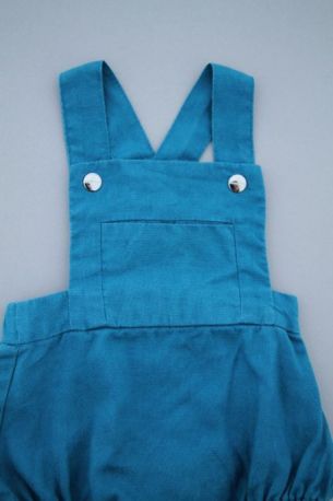 Barboteuse mixte en tricot bleu marine, pour bébé 1 mois, idéal pour la mi-saison ou l'hiver, souple et confortable à porter, avec bretelles boutonnées réglables croisées et 3 boutons à...