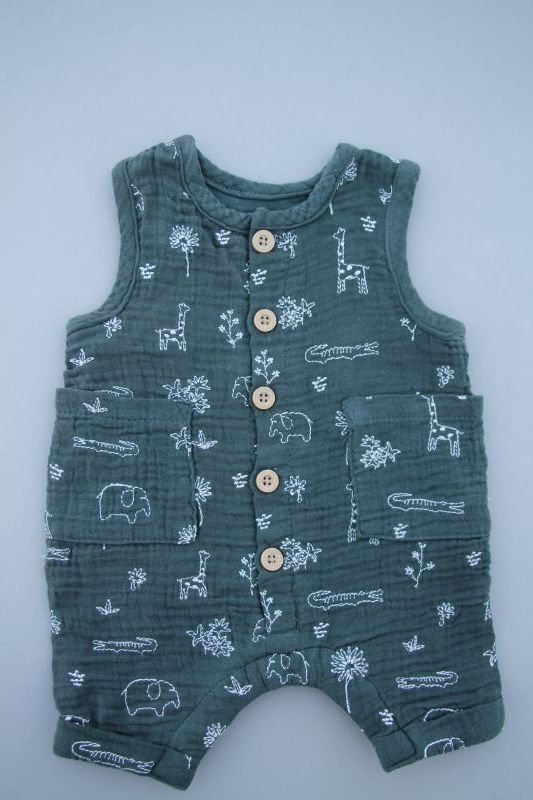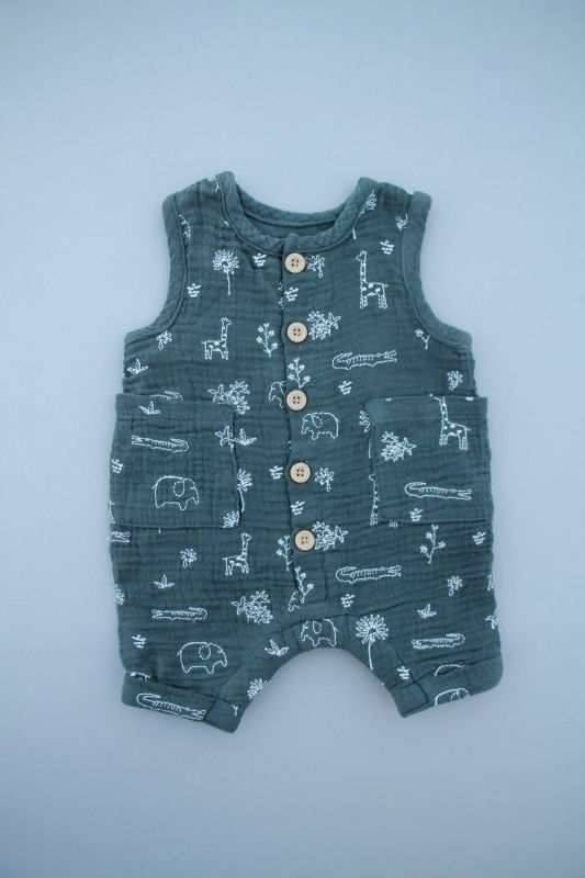 Combishort mixte en jersey doux blanc imprimé nuages gris, pour bébé naissance, léger pour un petit bébé d'été et confortable à porter, avec pressions devant et à l'entrejambe pour...
