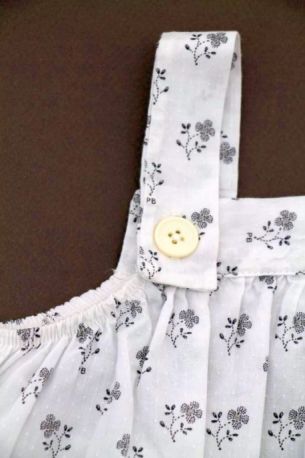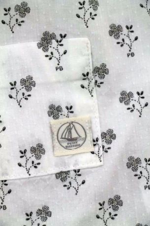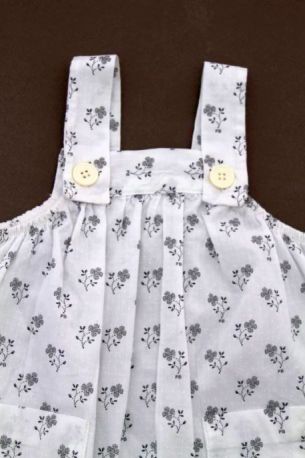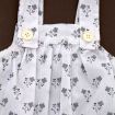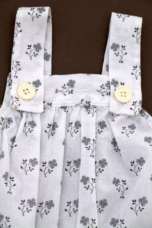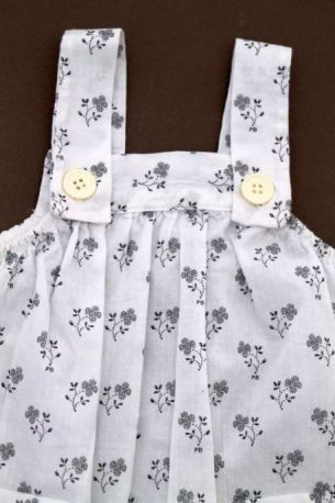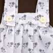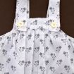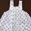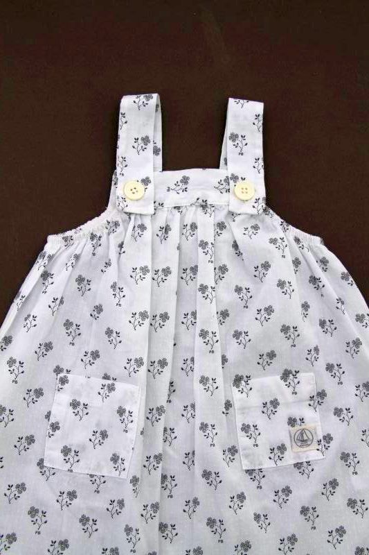 Robe en popeline blanche imprimée bleu marine, rose et gris argenté, pour bébé fille 6 mois, très légère pour le printemps ou l'été, avec 3 boutons-pression de chaque côté des épaules...
