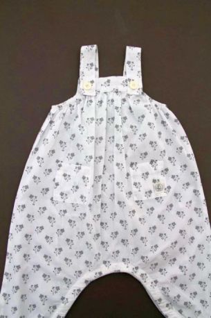 Barboteuse en popeline de coton rose pâle imprimé floral, pour bébé fille 6 mois, très léger pour l'été, avec 3 boutons-pression dans le dos et 3 à l'entrejambe pour faciliter l'habillage...