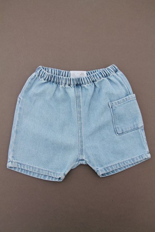 Short en denim bleu jean, pour bébé garçon 3 à 6 mois, léger pour le printemps ou l'été, souple et confortable à porter, avec taille élastique en jersey gris, un bouton et un cordon...