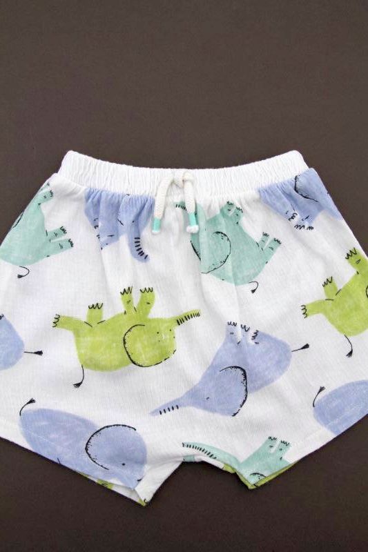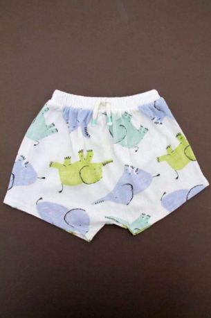 Salopette short blanche doublée, bébé garçon 6 mois, très légère pour l'été, souple et confortable à porter, avec bretelles boutonnées réglables, un bouton de chaque côté de la taille...