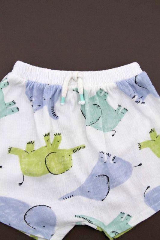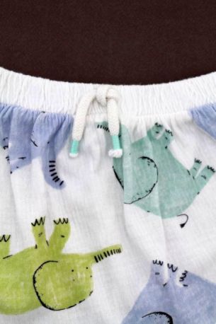 Pyjacourt en jersey fin blanc et bleu, pour bébé garçon 6 mois, comprenant un tee-shirt avec 2 boutons sur la poitrine pour faciliter l'habillage et un short avec taille élastique.