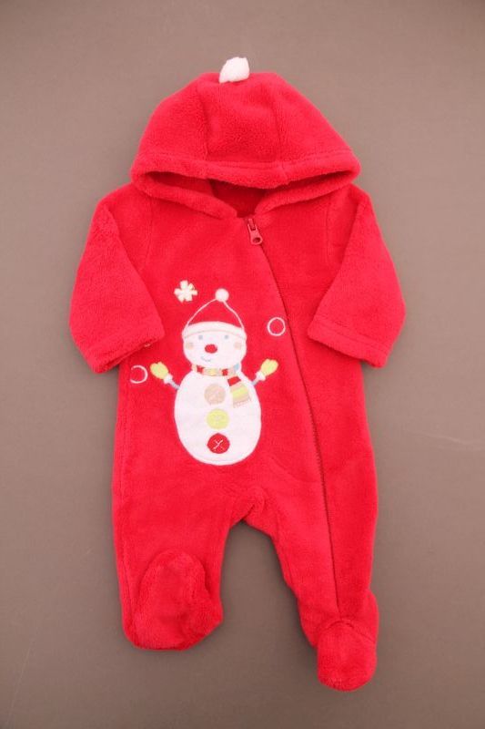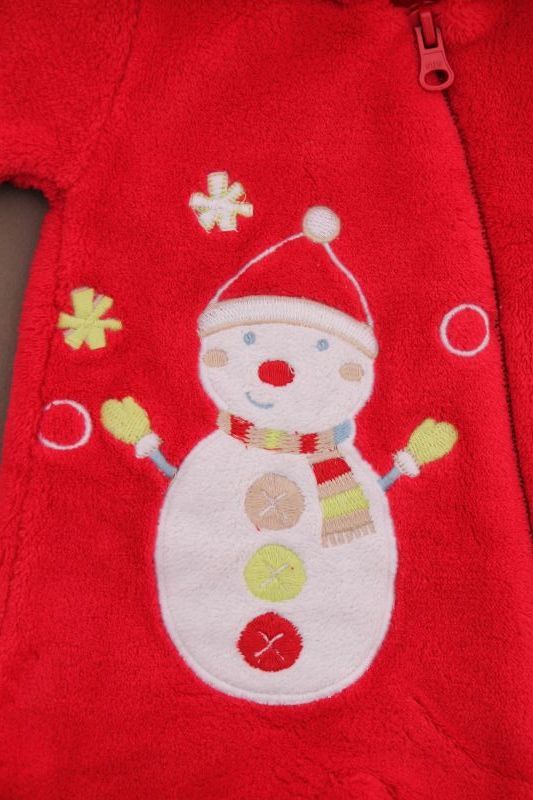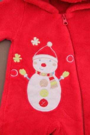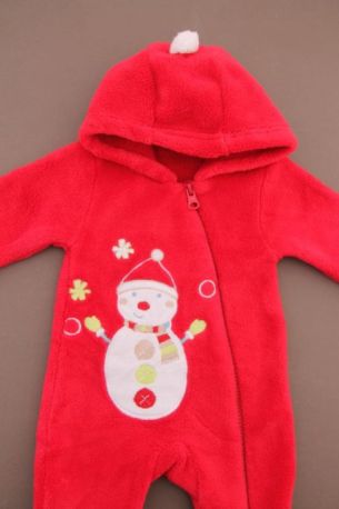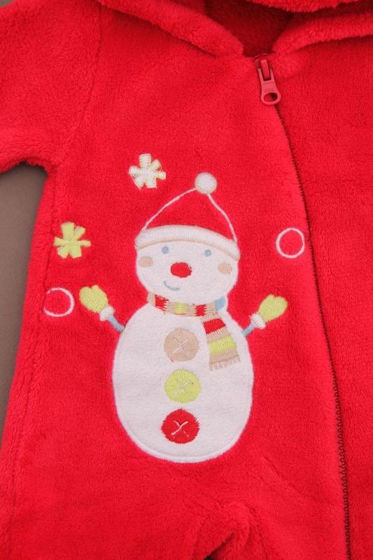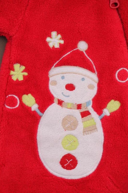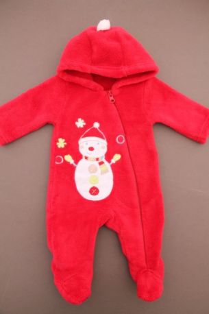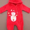 Dors-bien mixte en velours rouge avec renne brodé, pour bébé 1 mois, chaud pour les fêtes de fin d'année : Noël et Nouvel An, avec pressions au dos.