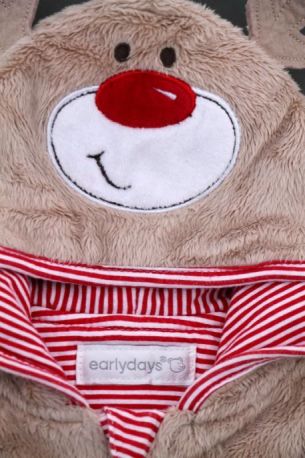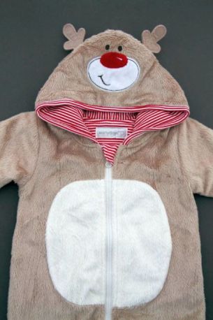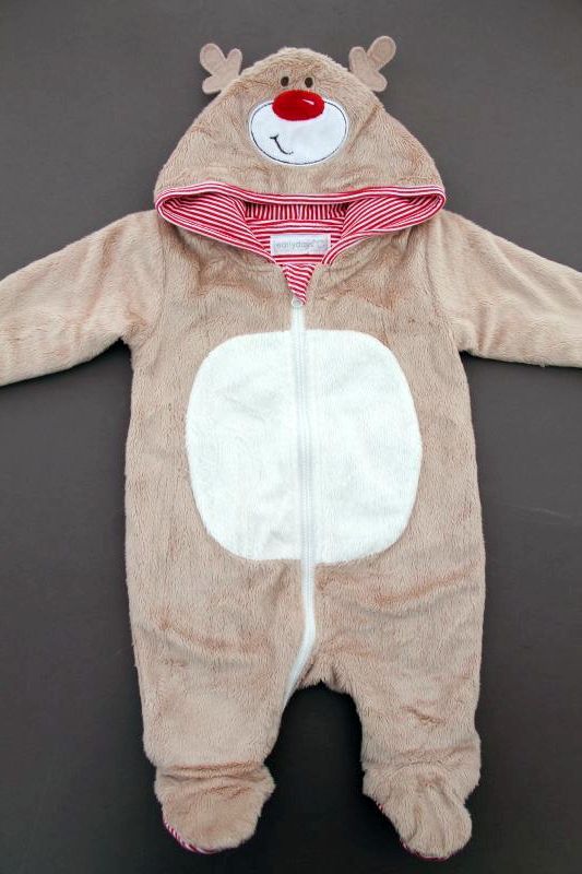 Dors-bien mixte en velours rouge avec renne brodé, pour bébé 1 mois, chaud pour les fêtes de fin d'année : Noël et Nouvel An, avec pressions au dos.