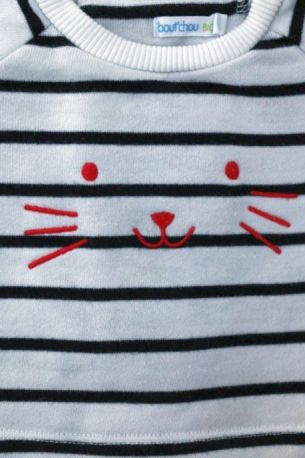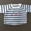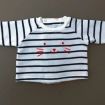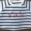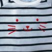 Dors-bien en velours doux bleu marine et blanc rayé rouge, pour bébé garçon 6 mois, chaud pour la mi-saison ou l'hiver, avec motifs Londres brodés et sérigraphiés sur la poitrine et pressions...