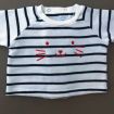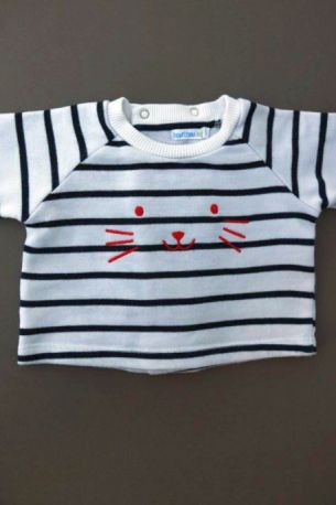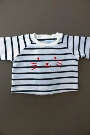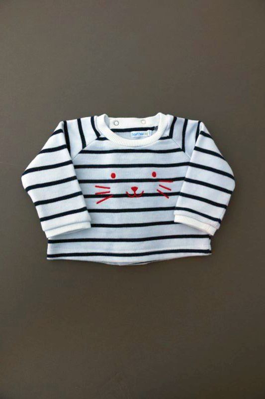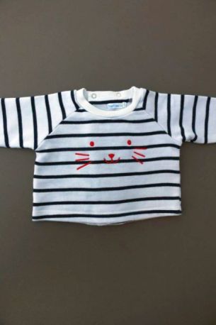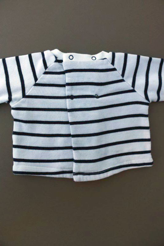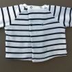 Polo en jersey doux blanc rayé bleu à manches longues, pour bébé garçon 6 mois, chaud pour le printemps ou la mi-saison, avec 3 boutons sur le poitrine pour faciliter l'enfilage.
