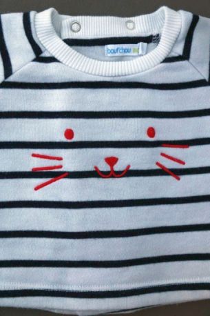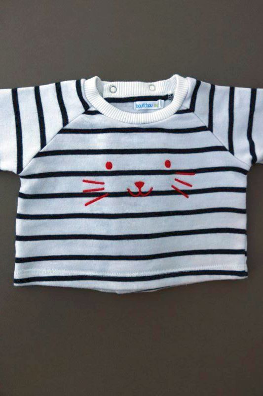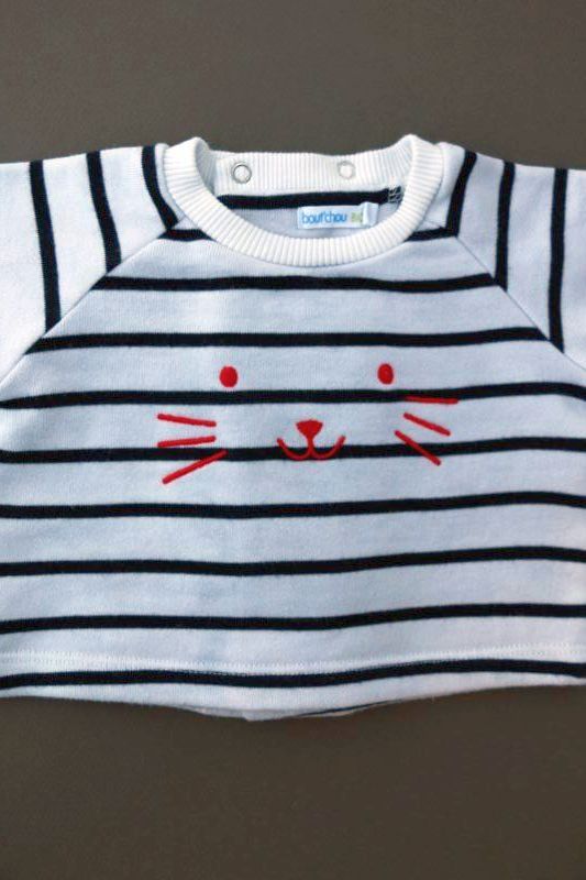 Ensemble marinière 2 pièces, pour bébé garçon 3 mois, très chaud pour l'automne ou l'hiver, comprenant un tee-shirt en jersey doux blanc rayé bleu à manches longues avec pressions tout le...